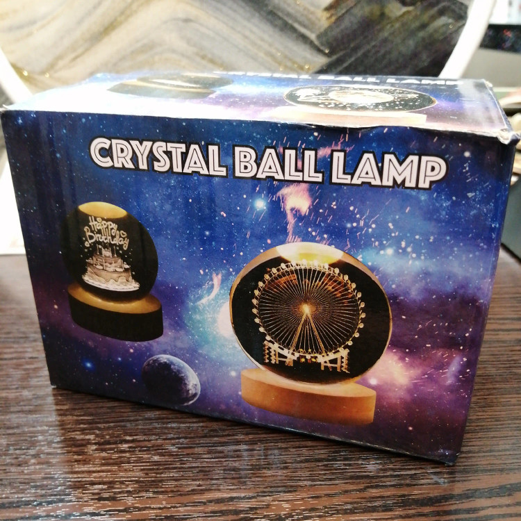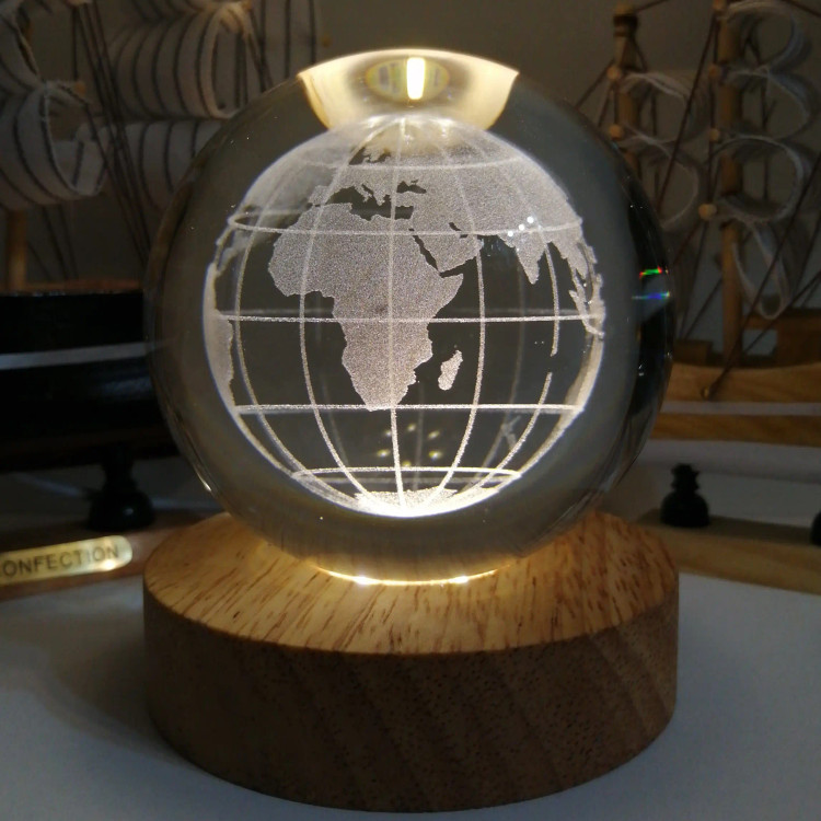 گوی کریستالی چراغدار طرح کره زمین قطر گوی 8 cm ارتفاع 10 cm روشنایی از طریق برق کابل usb جنس درجه 1 وارداتي
