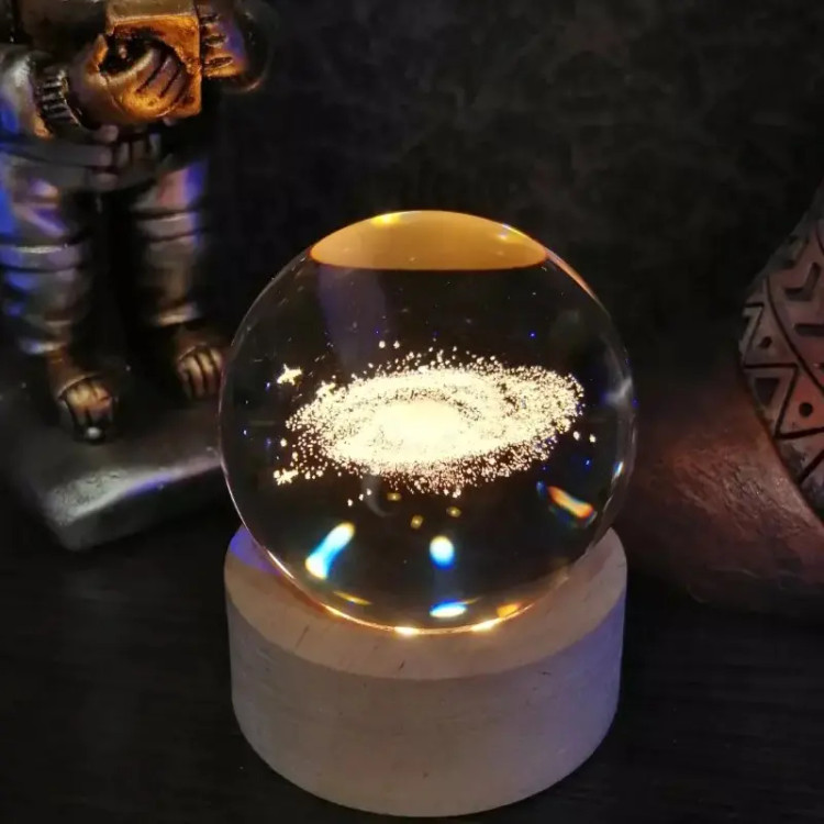 گوی کریستالی چراغدار طرح کهکشان راه شیری ارتفاع 8 cm قطر گو ۶cm روشنایی از طریق کابل usb و برق شهری و پاوربانک و....