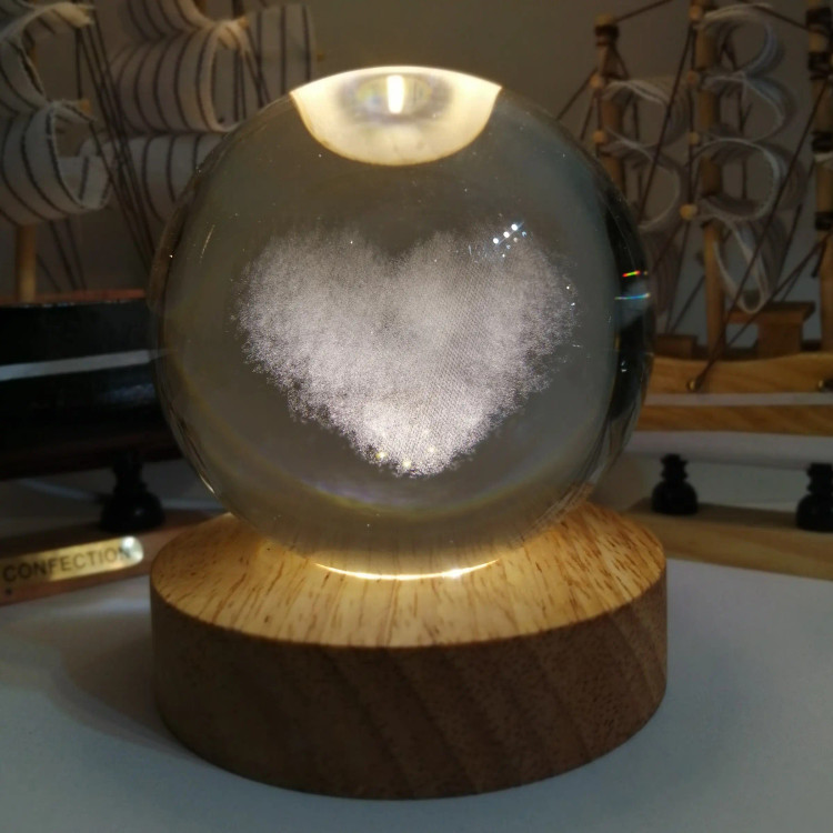 گوی کریستالی چراغدار طرح قلب ابری قطر گوی 8 cm ارتفاع 10 cm روشنایی از طریق برق کابل usb جنس درجه 1 وارداتي